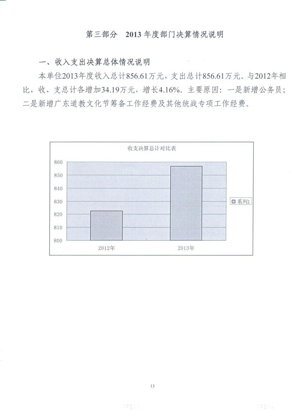 中共澳门金沙娱乐城官网委统战部2013年度部门决算公开