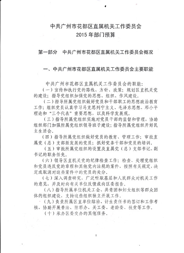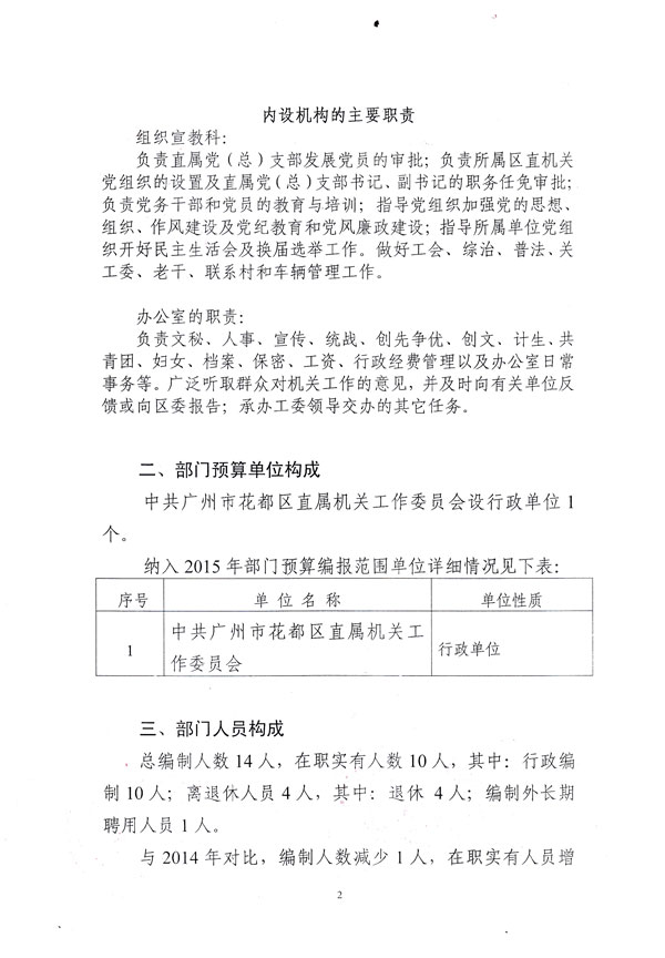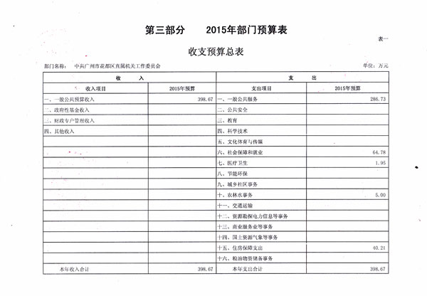 中共澳门金沙娱乐城官网直属机关工作委员会2015年度部门预算