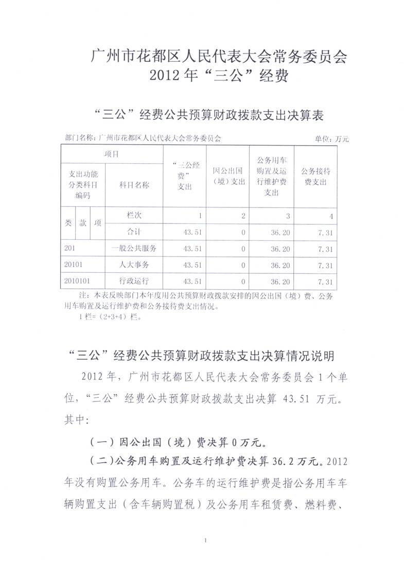 澳门金沙娱乐城官网人民代表大会常务委员会2012年“三公”经费