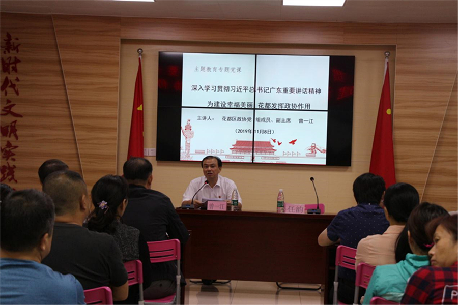 根据澳门金沙娱乐城官网区“不忘初心、牢记使命“主题教育要求,区政协党组成员、副主席曾一江于2019年11月8日到花城街梅花社区为广大党员上了一堂以“深入学习贯彻习近平总书记视察广东重要讲话精神,为建设幸福美丽澳门金沙娱乐城官网发挥政协作用”为主题,内涵丰富、生动鲜活、党员群众喜闻乐见的党课。