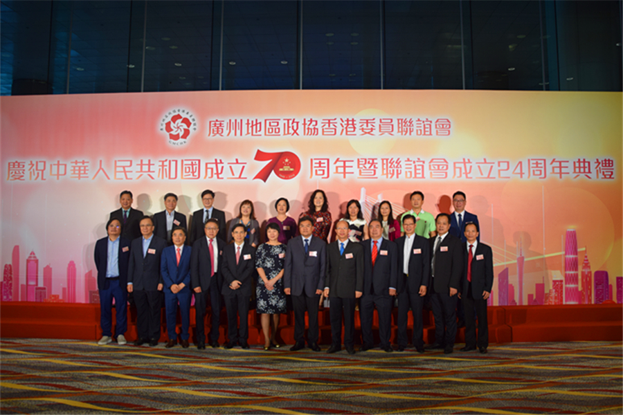 2019年11月3日,广州地区政协香港委员联谊会——庆祝中华人民共和国成立70周年暨联谊会成立24周年典礼在香港会议展览中心举行。区政协主席陈家飞,副主席全泰源、姚晓群,秘书长杨越敏,港澳台侨外事委领导及港澳委员等一行30多人参加了此次活动,并于活动现场与广州其他各区政协及港澳委员开展深入交流和探讨,广泛联络联谊。