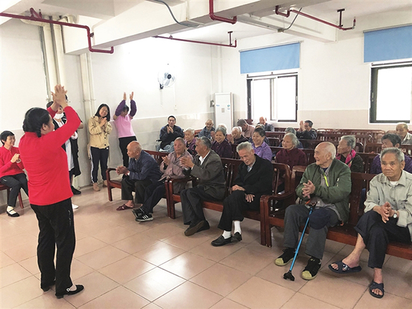 在丰富老人精神文化生活方面,庞院长结合各部门意见,通过与社工组织合作,引入社会工作者专业性的工作理念,适时开展丰富多彩的娱乐活动,营造老人温馨生活环境。经庞院长介绍,今年正值建党98周年和庆祝新中国成立70周年,区养老院围绕这两个重要节日开展志愿者帮教唱红歌、观看党建、新中国成立等题材红色电影,动手动脑益智手工等庆祝活动。熟悉的歌词和旋律带动了老人们的跟唱,现场掌声连绵不断,老人们沉浸在一片欢声笑语中。