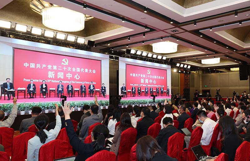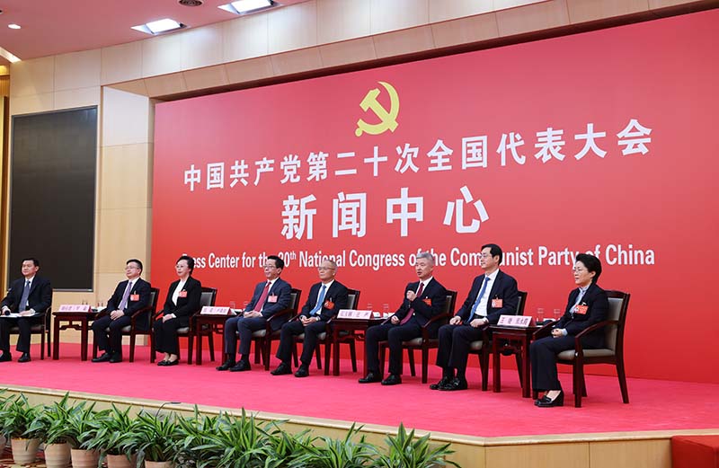 10月19日,中国共产党第二十次全国代表大会新闻中心举行集体采访。重庆、四川、贵州、云南、西藏、陕西、甘肃代表团新闻发言人出席,介绍代表团学习讨论二十大报告情况,并回答记者提问。