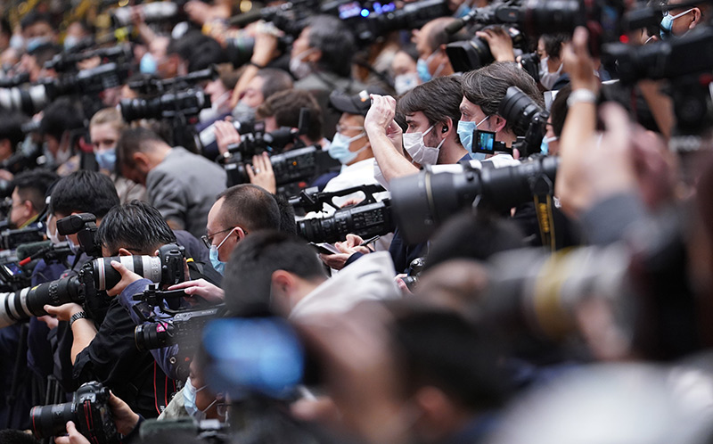 10月22日,中国共产党第二十次全国代表大会闭幕会在北京人民大会堂举行。这是记者在采访拍摄。