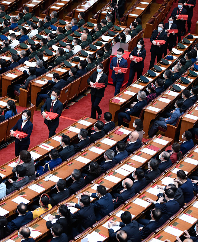 10月22日,中国共产党第二十次全国代表大会闭幕会在北京人民大会堂举行。这是工作人员在发选票。