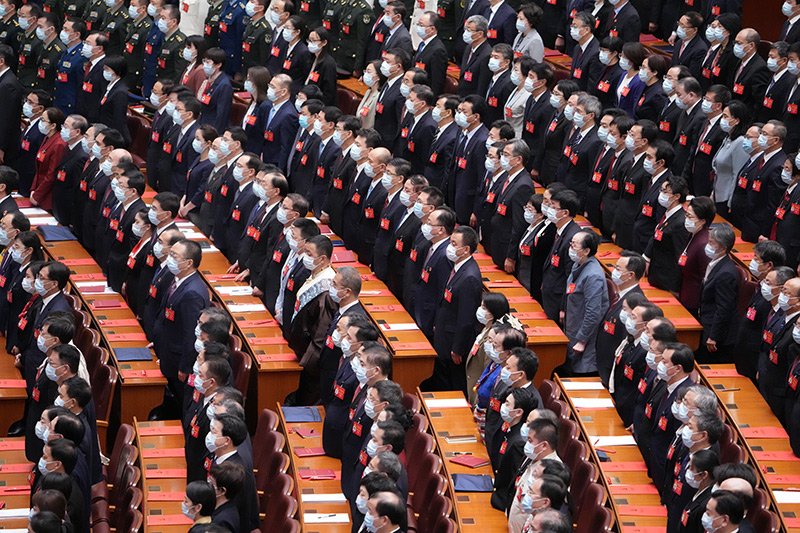 10月22日,中国共产党第二十次全国代表大会闭幕会在北京人民大会堂举行。这是闭幕会后,代表走出人民大会堂。