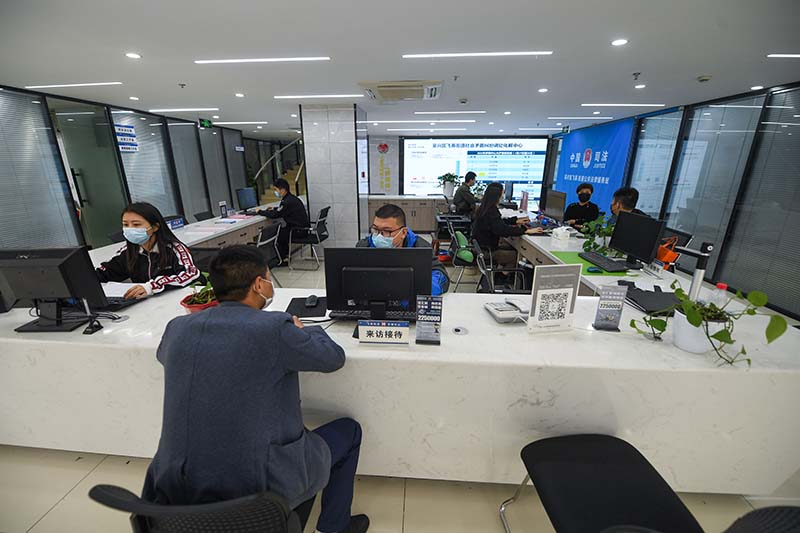 社区居民在浙江省湖州市吴兴区飞英街道矛盾纠纷调处化解中心进行咨询登记(2022年4月28日摄)。新华社记者 徐昱 摄