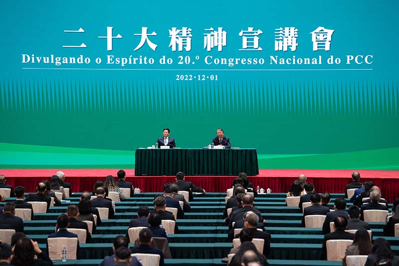 学习贯彻党的二十大精神中央宣讲团在澳门举办专题讲座(12月1日摄)。新华社记者 张金加 摄