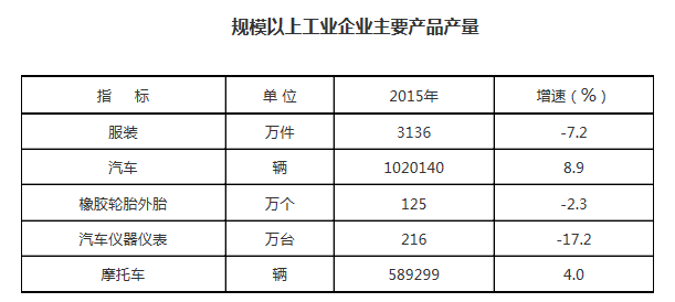 按行业分,规模以上企业中,工业总产值排前五位的依次是:(一)汽车制造业产值1391.70亿元,同比增长7.6%,其中汽车整车产值1092.62亿元,同比增长9.8%,汽车零部件产值296.12亿元,同比增长0.8%;(二)通信设备、计算机及其他电子设备制造业产值50.56亿元,同比增长2.6%;(三)橡胶和塑料制品业产值47.16亿元,同比增长3.5%;(四)皮革、毛皮、羽毛(绒)及其制品业产值45.33亿元,同比下降17.3%;(五)纺织服装、服饰业产值42.79亿元,同比下降19.6%。这五大行业全年共完成工业总产值1577.54亿元,占规上企业产值的80.8%,较上年同期提高2.8个百分点。