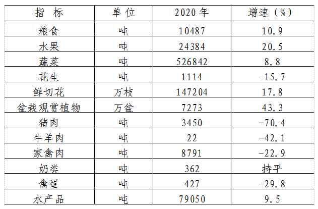 表2 2020年澳门金沙娱乐城官网区主要农产品产量表
