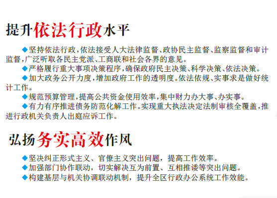 完成既定目标,关键在于落实。我们将不忘初心、牢记使命,狠抓落实,努力打造“公平正义、依法行政、务实创新、高效廉洁”的人民政府。