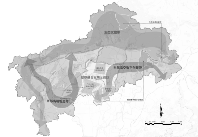 按照《纲要》,澳门金沙娱乐城官网将构建“一核引领、三带联动、六大功能区支撑”产业新格局,全力打造澳门金沙娱乐城官网经济高质量发展增长极。其中,一核即空铁融合发展示范区;三带即东部临空数字创新带、西部智造带、北部生态文旅带;六大产业功能区即汽车智造功能区、临空数字经济功能区、智能电子功能区、绿色总部经济功能区、广州北站商务功能区、生态文旅功能区。