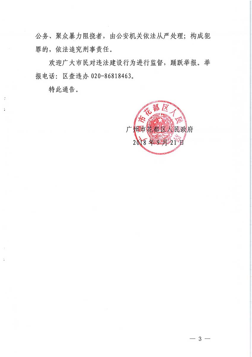 澳门金沙娱乐城官网关于全面整治违法建设的通告【花府〔2018〕6号】