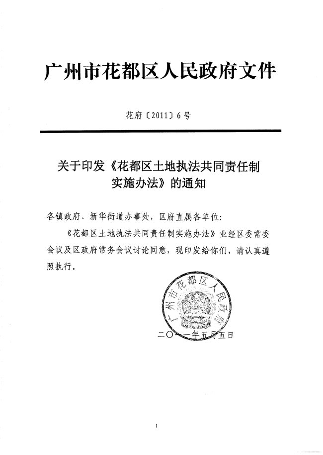 关于印发《澳门金沙娱乐城官网区土地执法共同责任制实施办法》的通知 【花府[2011]6号】