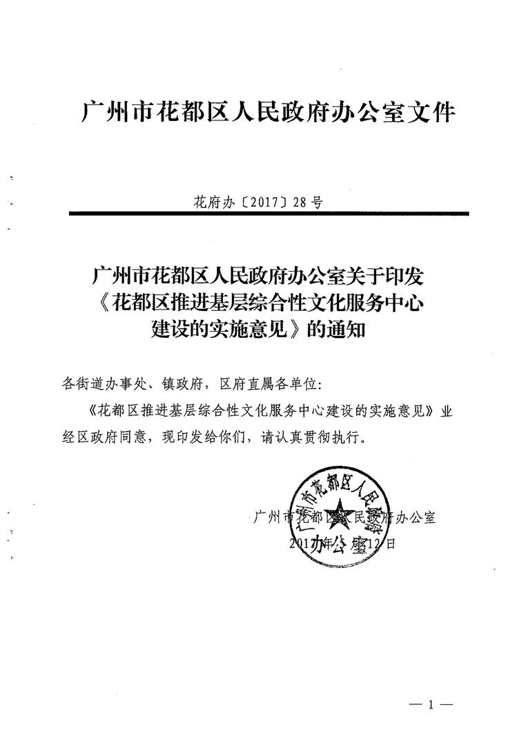 澳门金沙娱乐城官网办公室关于印发《澳门金沙娱乐城官网区推进基层综合文化服务中心建设的实施意见》的通知【花府办〔2017〕28号】