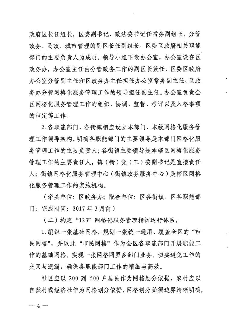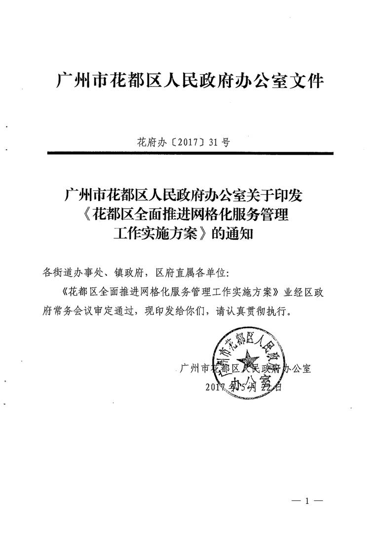 澳门金沙娱乐城官网办公室关于印发《澳门金沙娱乐城官网区全面推进网格化服务管理工作实施方案》的通知【花府办〔2017〕31号】