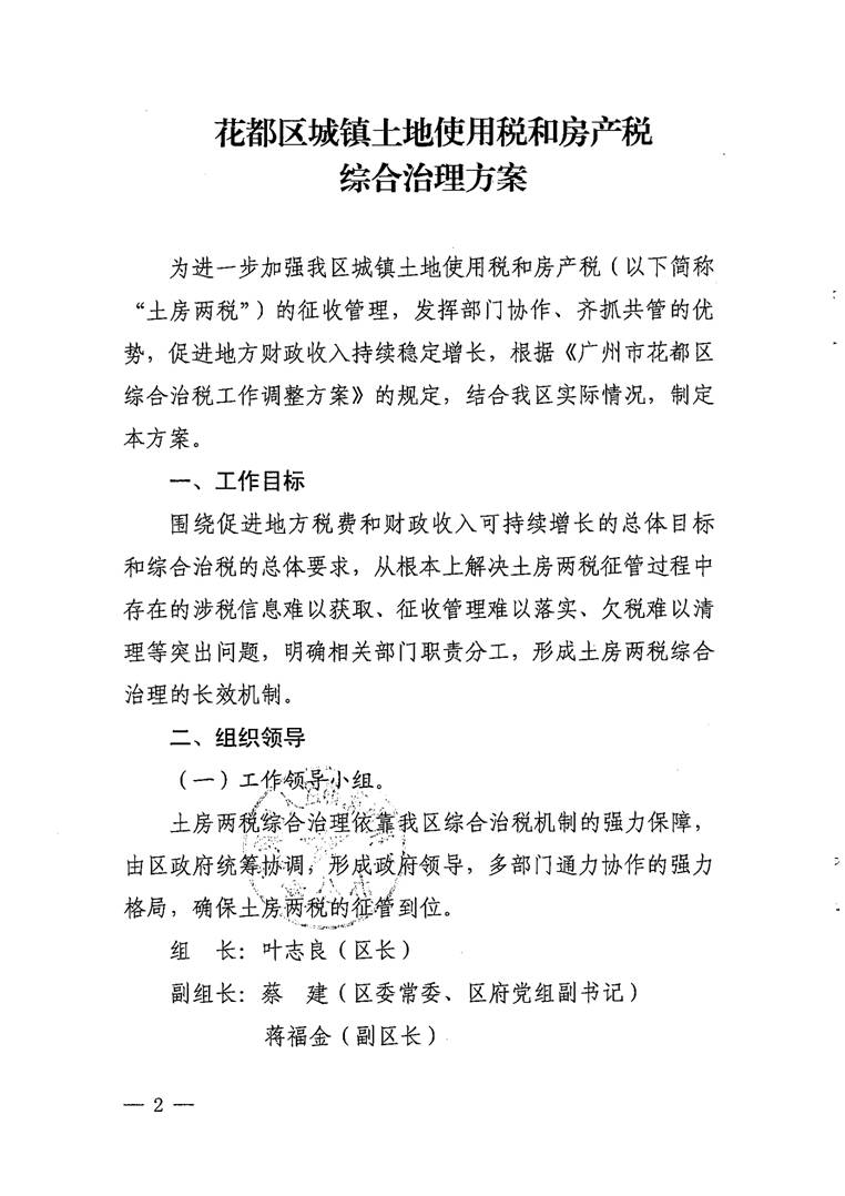澳门金沙娱乐城官网办公室关于印发澳门金沙娱乐城官网区城镇土地使用税和房产税综合治理方案的通知【花府办〔2017〕32号】(已失效)