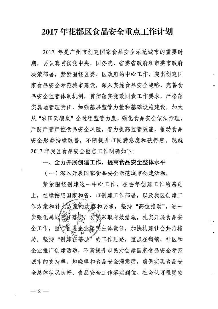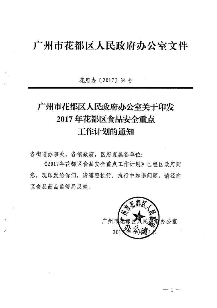 澳门金沙娱乐城官网办公室关于印发2017年澳门金沙娱乐城官网区食品安全重点工作计划的通知【花府办〔2017〕34号】(已失效)