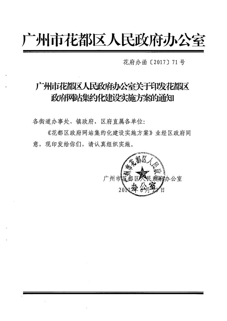 澳门金沙娱乐城官网办公室关于印发澳门金沙娱乐城官网区政府网站集约化建设实施方案的通知【花府办函〔2017〕71号】(已失效)