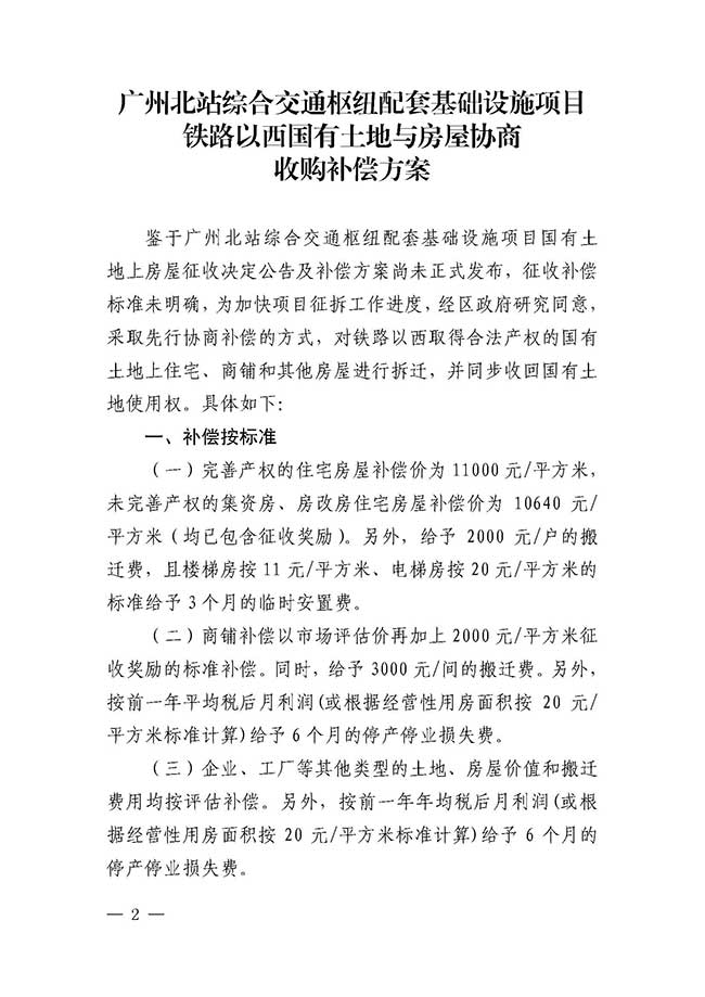 澳门金沙娱乐城官网办公室关于印发广州北站综合交通枢纽配套基础设施项目铁路以西国有土地与房屋协商收购补偿方案的通知【花府办〔2017〕12号】