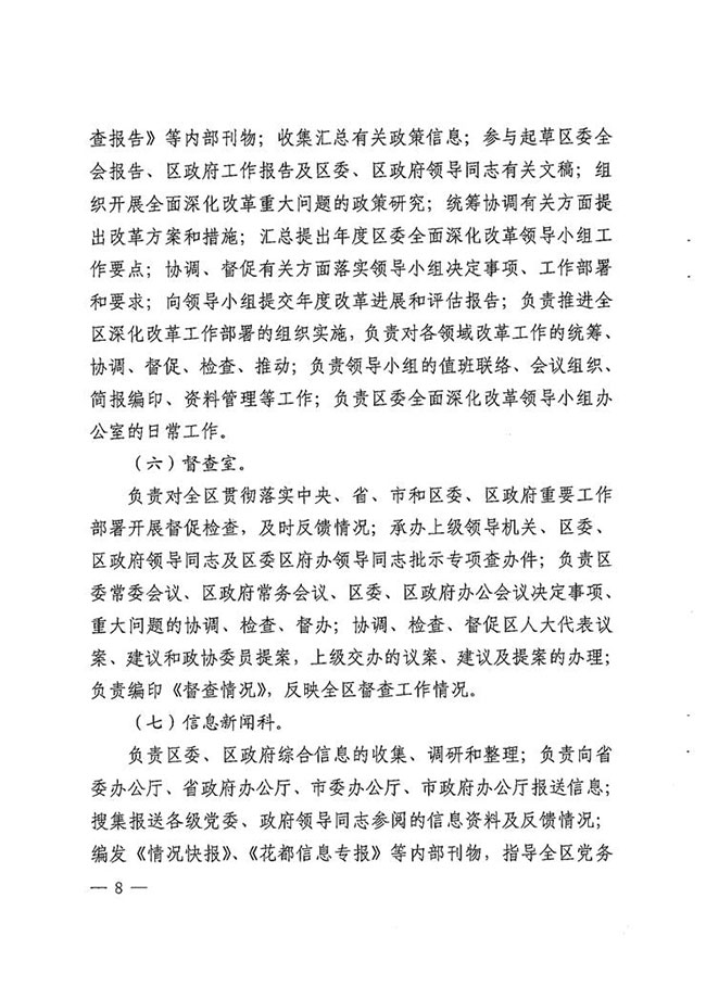 澳门金沙娱乐城官网办公室关于印发中共澳门金沙娱乐城官网委办公室、澳门金沙娱乐城官网办公室主要职责内设机构和人员编制规定的通知 【花府办[2015]18号】