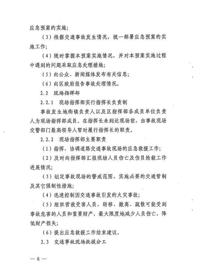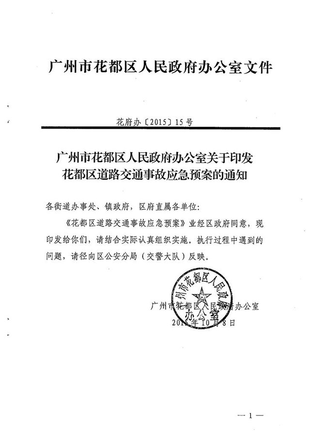 澳门金沙娱乐城官网办公室关于印发澳门金沙娱乐城官网区道路交通事故应急预案的通知 【花府办[2015]15号】