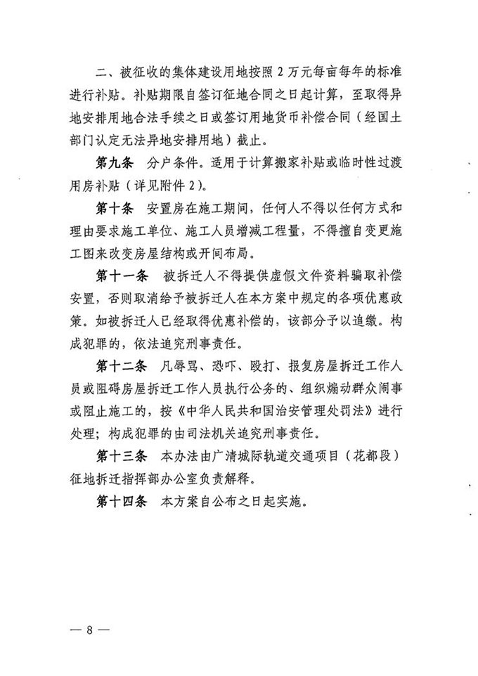 澳门金沙娱乐城官网办公室关于印发《广清城际轨道交通项目(澳门金沙娱乐城官网段)征收农村集体土地上房屋公寓式安置办法》的通知【花府办[2015]5号】