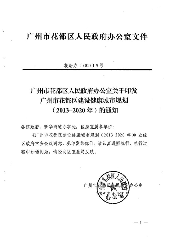 澳门金沙娱乐城官网办公室关于印发澳门金沙娱乐城官网建设健康城市规划(2013-2020年)的通知 【花府办[2013]9号】