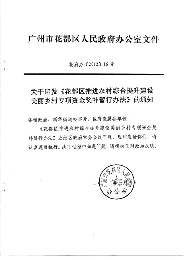 关于印发《澳门金沙娱乐城官网区推进农村综合提升建设美丽乡村专项资金奖补暂行办法》的通知 【花府办[2012]16号】