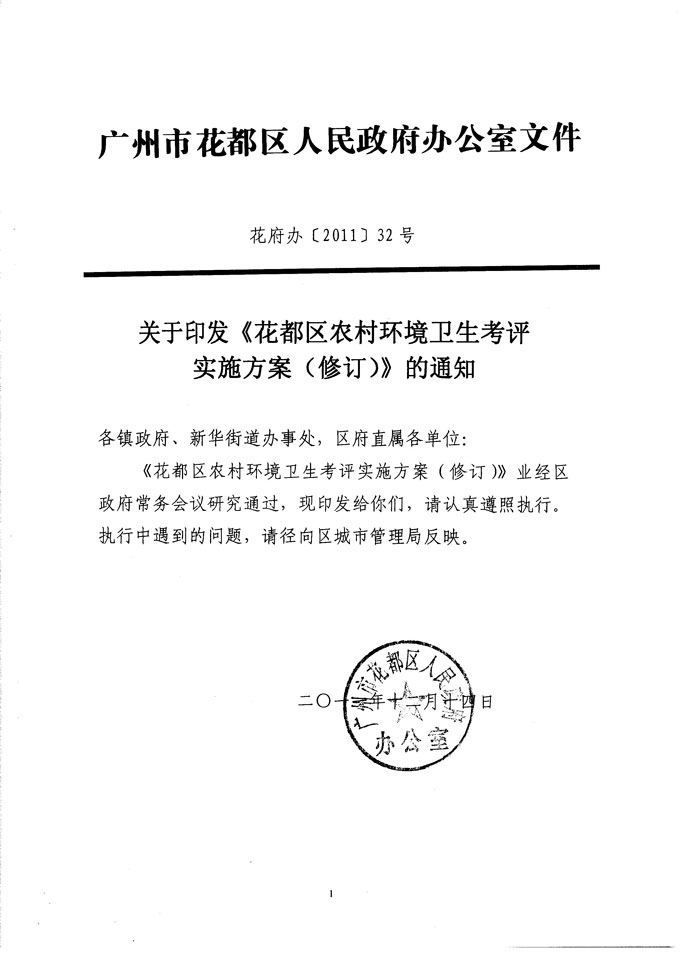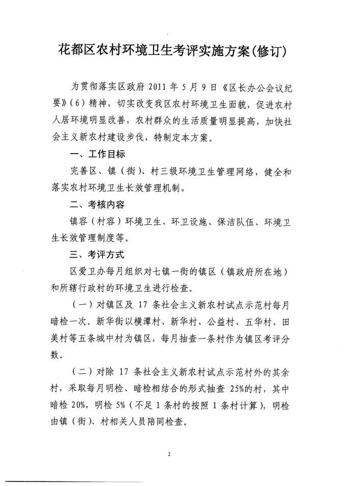 关于印发《澳门金沙娱乐城官网区农村环境卫生考评实施方案(修订)》的通知 【花府办[2011]32号】
