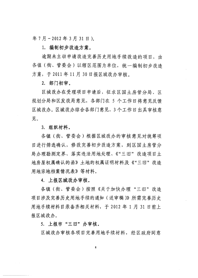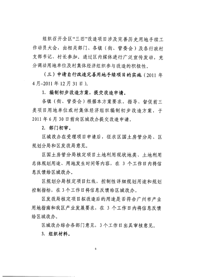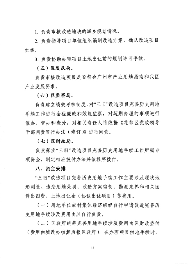 关于印发《澳门金沙娱乐城官网区“三旧”改造项目涉及完善历史用地手续工作方案》的通知 【花府办[2011]7号】