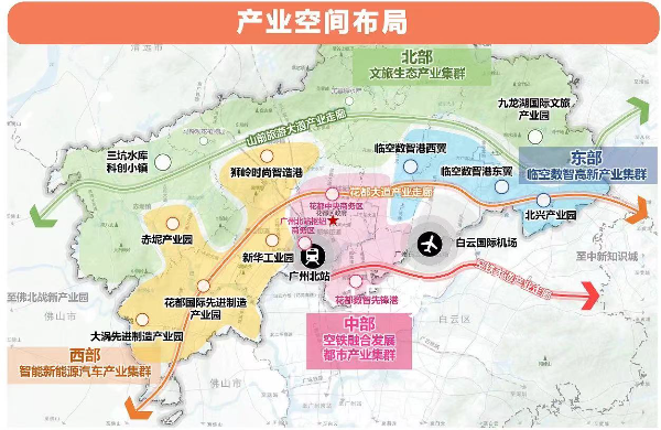 白云国际机场、广州北站以及广州国际港(广州铁路集装箱中心站)三大交通枢纽,国内外通航点240多个,21条轨道交通和19条高快速路,具有世界级的综合交通聚合形态和枢纽功能。