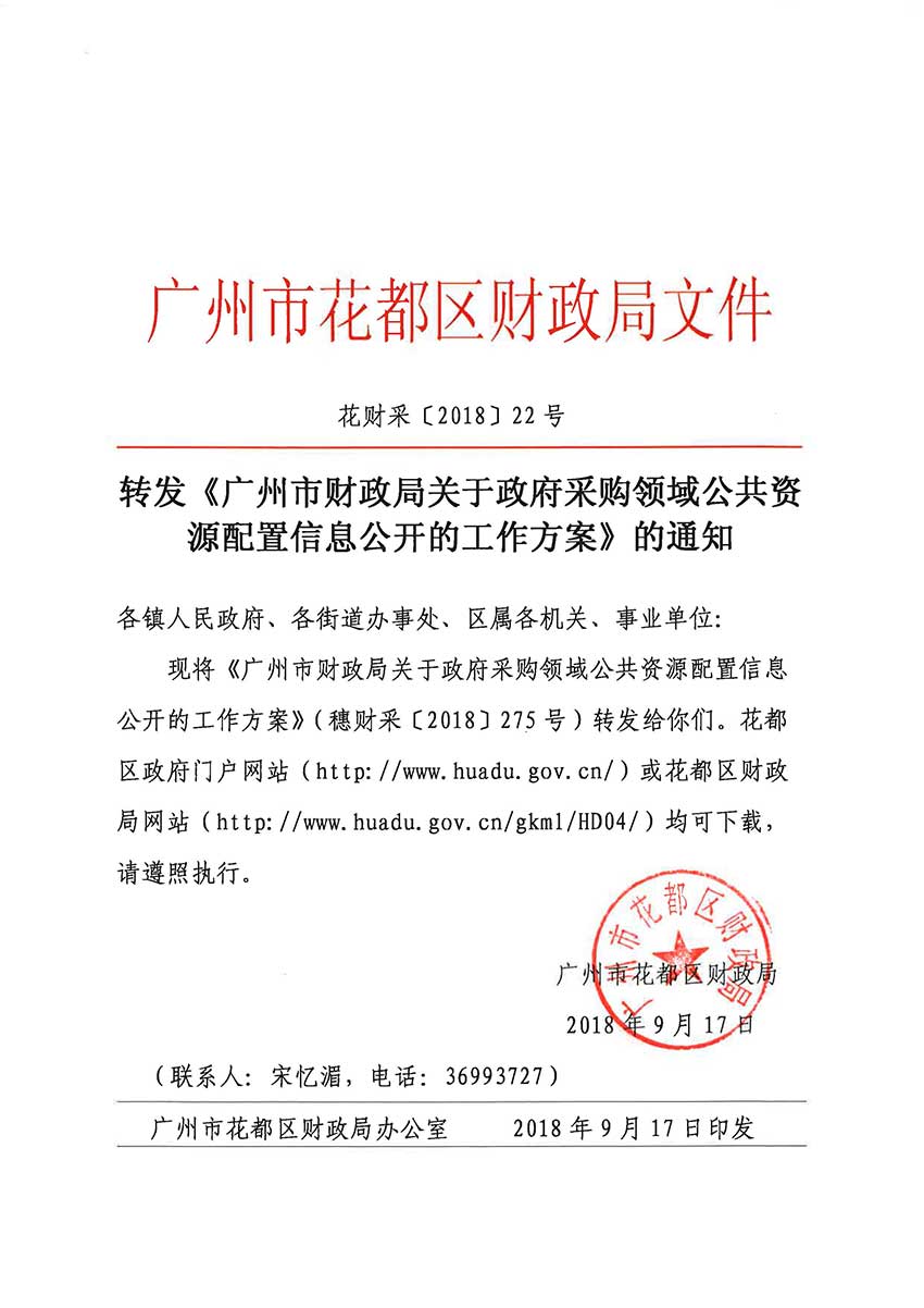 转发《广州市财政局关于政府采购领域公开资源配置信息公开的工作方案》的通知