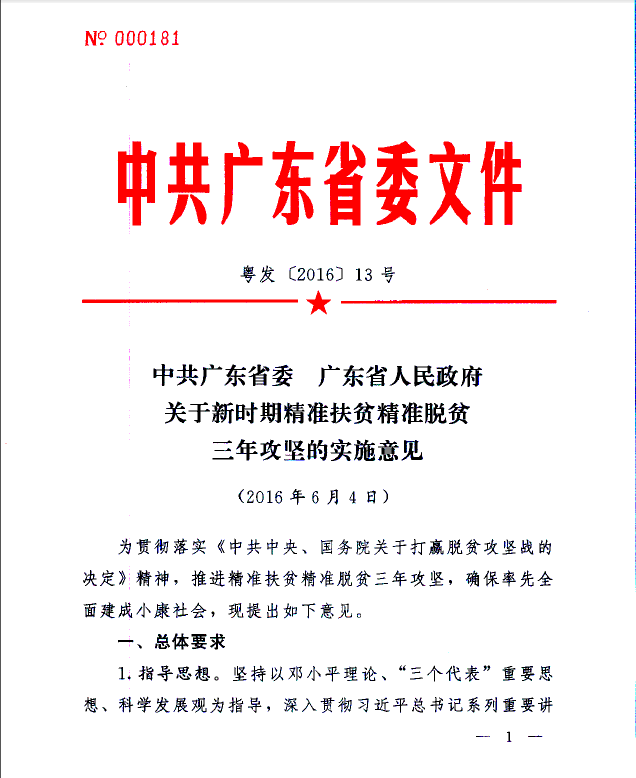 中共广东省委 广东省人民政府关于新时期精准扶贫精准脱贫三年攻坚的实施意见