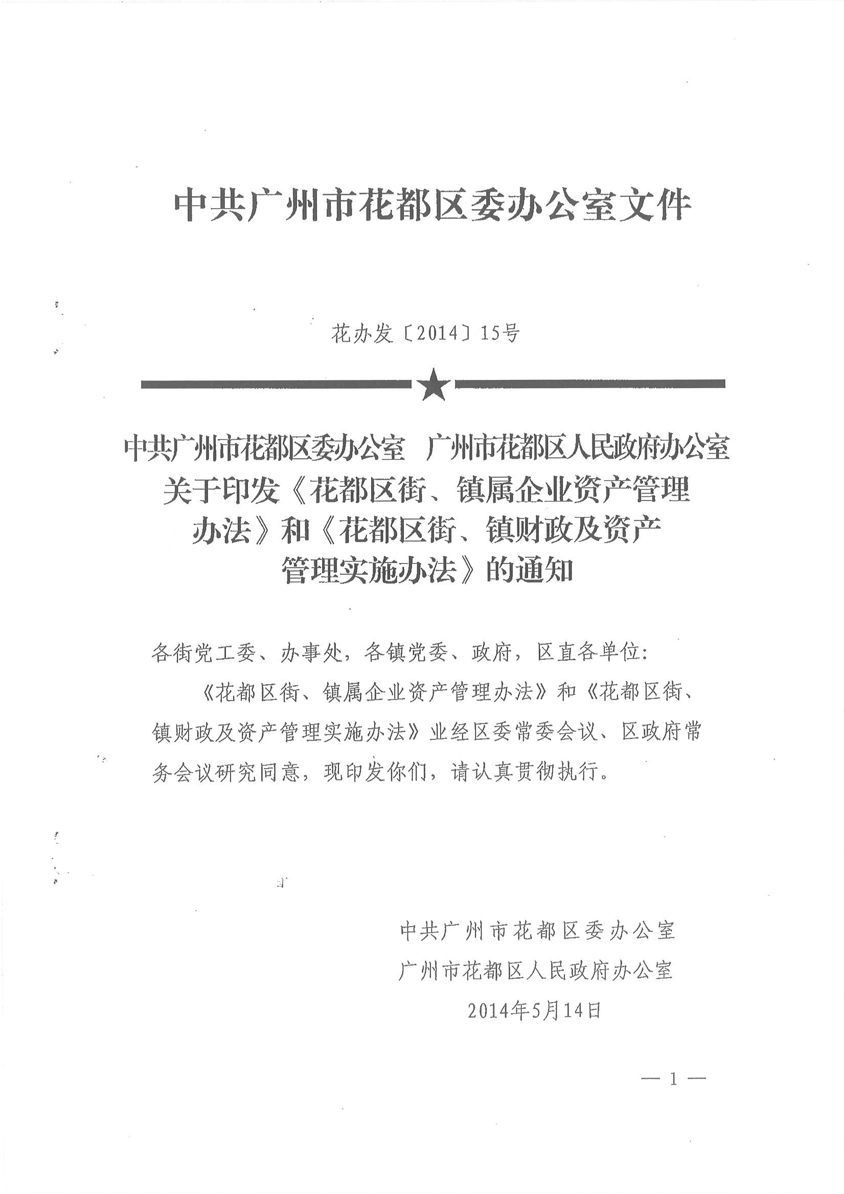 《澳门金沙娱乐城官网区街、镇属企业资产管理办法》和《澳门金沙娱乐城官网区街、镇财政及资产管理实施办法》