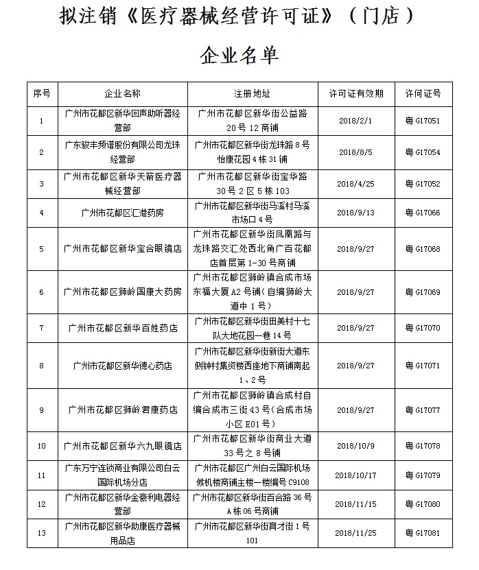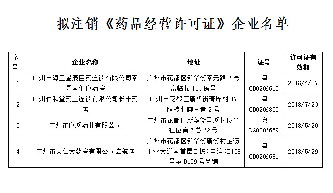 关于拟注销《医疗器械经营许可证》《药品经营许可证》的公示(2019年第1期)