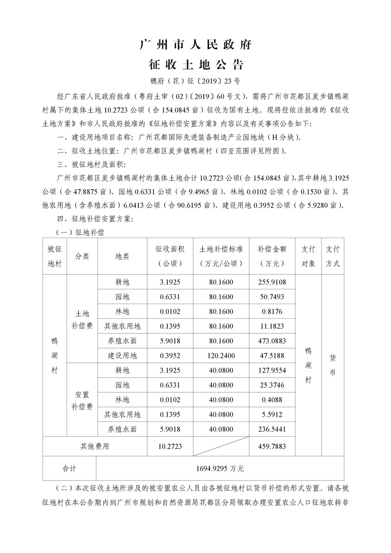 广州市人民政府征收土地公告--穗府(花)征〔2019〕23号