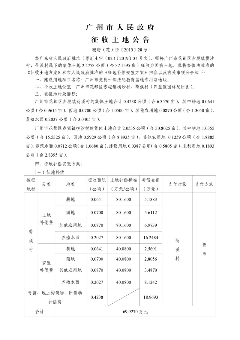 广州市人民政府征收土地公告--穗府(花)征〔2019〕28号