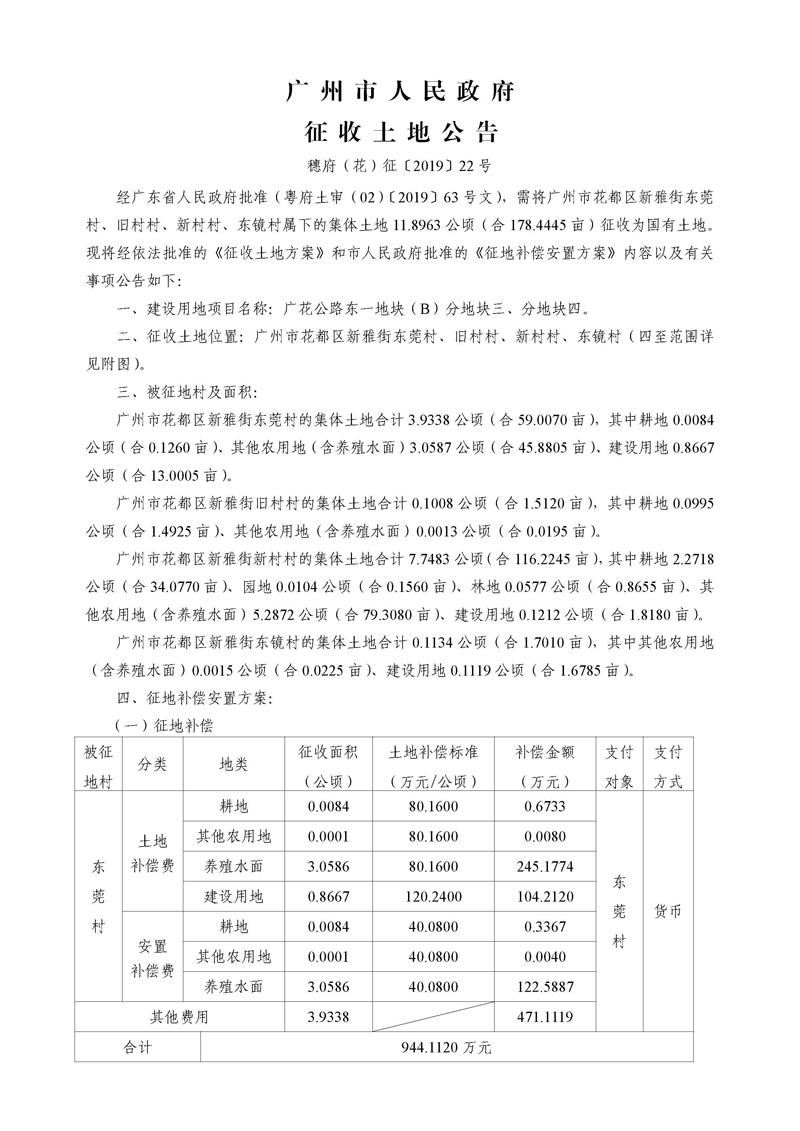 广州市人民政府征收土地公告--穗府(花)征〔2019〕22号