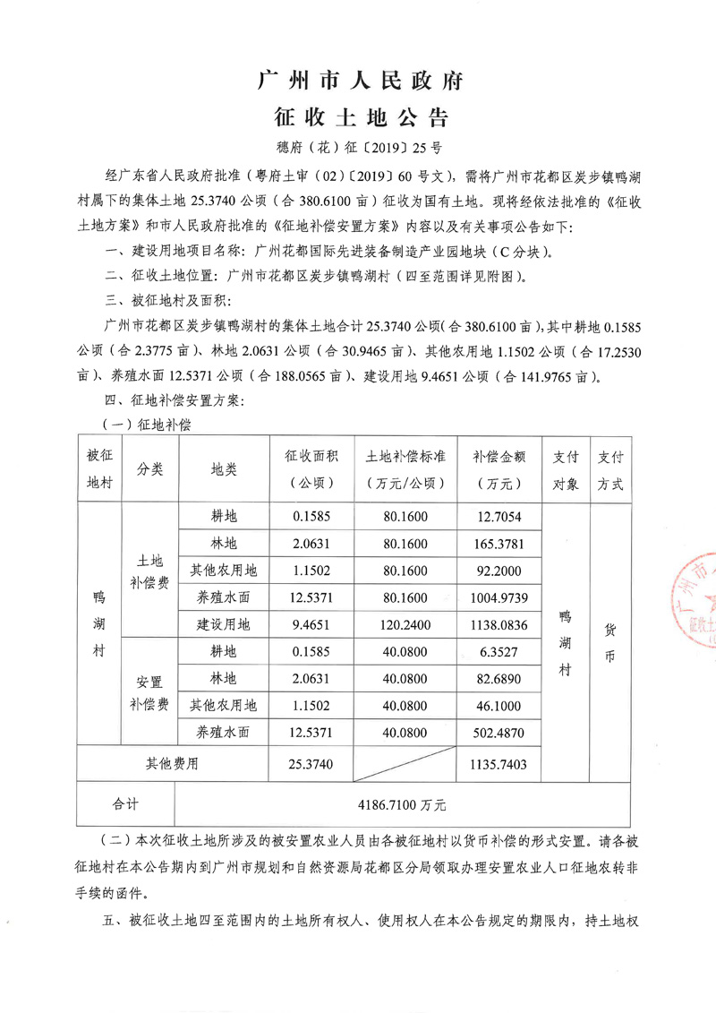 广州市人民政府征收土地公告--穗府(花)征〔2019〕25号