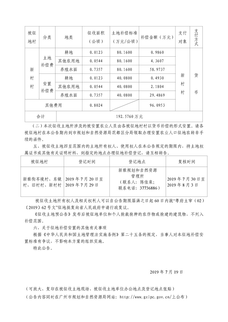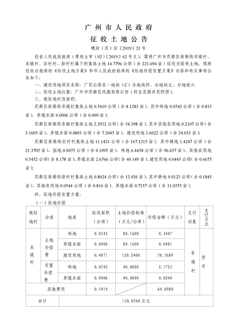 广州市人民政府征收土地公告--穗府(花)征〔2019〕21号