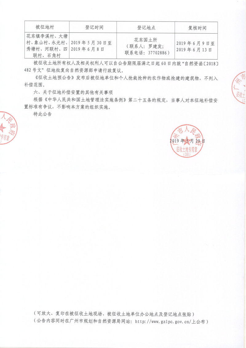 广州市人民政府征收土地公告--穗府(花)征〔2019〕14号