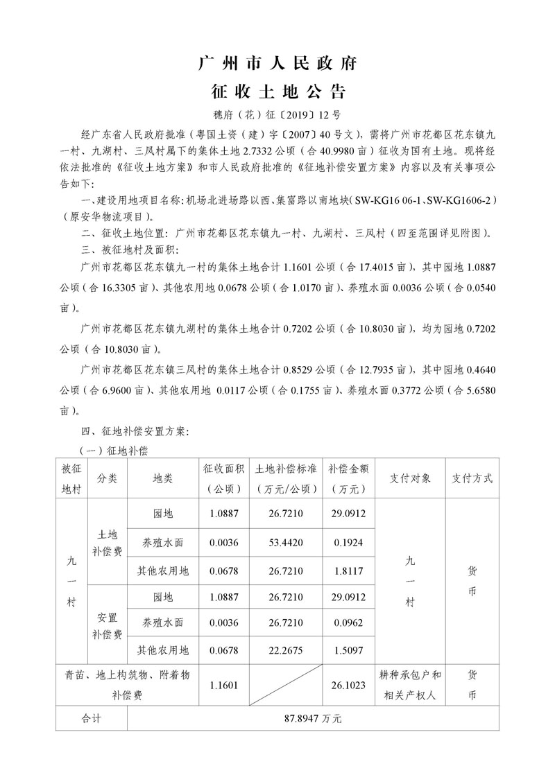 广州市人民政府征收土地公告--穗府(花)征〔2019〕12号