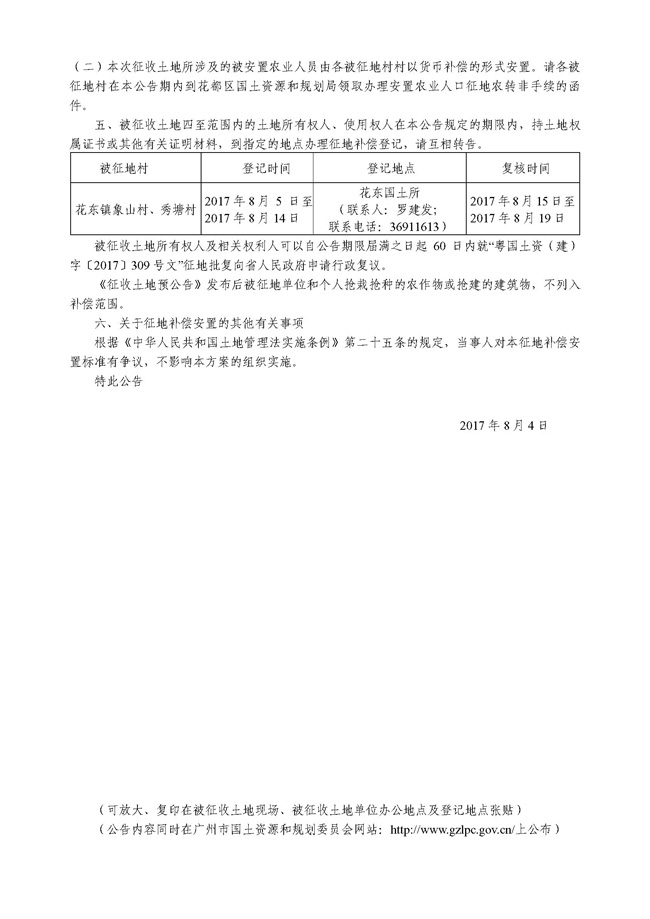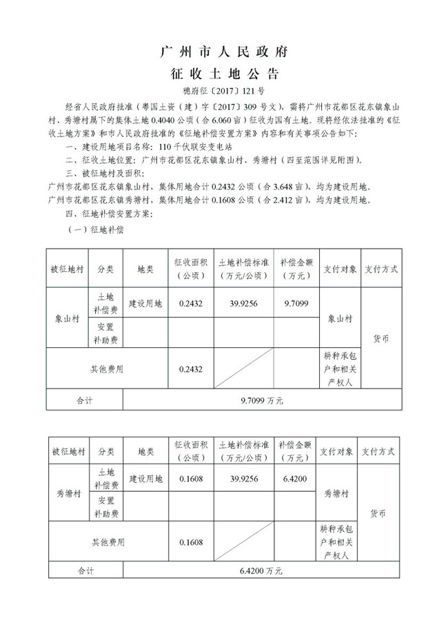 广州市人民政府征收土地公告——穗府征[2017]121号