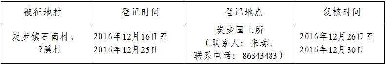 经省人民政府批准(粤国土资(建)字〔2016〕426号文),需将澳门金沙娱乐城官网炭步镇石南村、?溪村属下的集体土地3.1595公顷(合47.3925亩)征收为国有土地。现将经依法批准的《征收土地方案》和市人民政府批准的《征地补偿安置方案》内容以及有关事项公告如下: