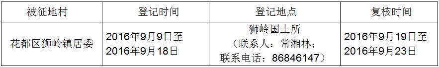 经省人民政府批准(粤国土资(建)字[2016]251号文),需将澳门金沙娱乐城官网狮岭镇居委属下的集体土地0.3376公顷(合5.0640亩)征收为国有土地。现将经依法批准的《征收土地方案》和市人民政府批准的《征地补偿安置方案》内容和有关事项公告如下: