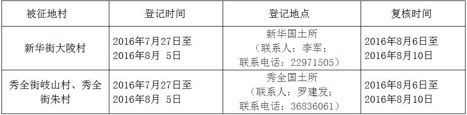 五、被征收土地四至范围内的土地所有权人、使用权人在本公告规定的期限内,持土地权属证书或其他有关证明材料,到指定的地点办理征地补偿登记,请互相转告。