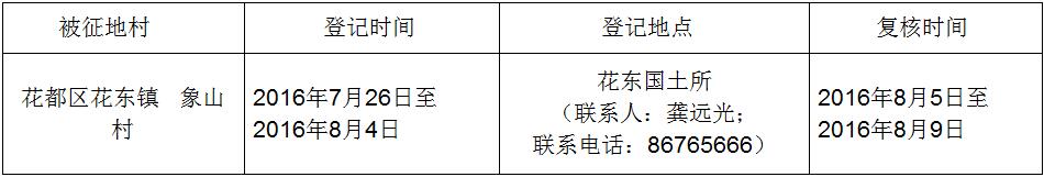 经省人民政府批准(粤国土资(建)字[2014]42号文),需将澳门金沙娱乐城官网区花东镇象山村属下的集体土地3.1255公顷(合46.8825亩)征收为国有土地。现将经依法批准的《征收土地方案》和市人民政府批准的《征地补偿安置方案》内容和有关事项公告如下: