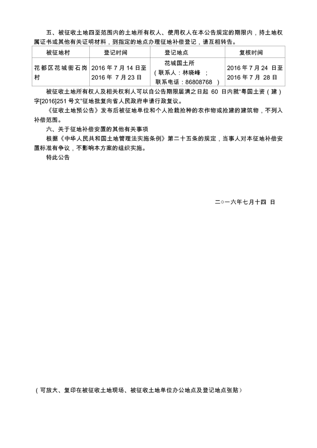 广州市人民政府征收土地公告——穗府征〔2016〕51号