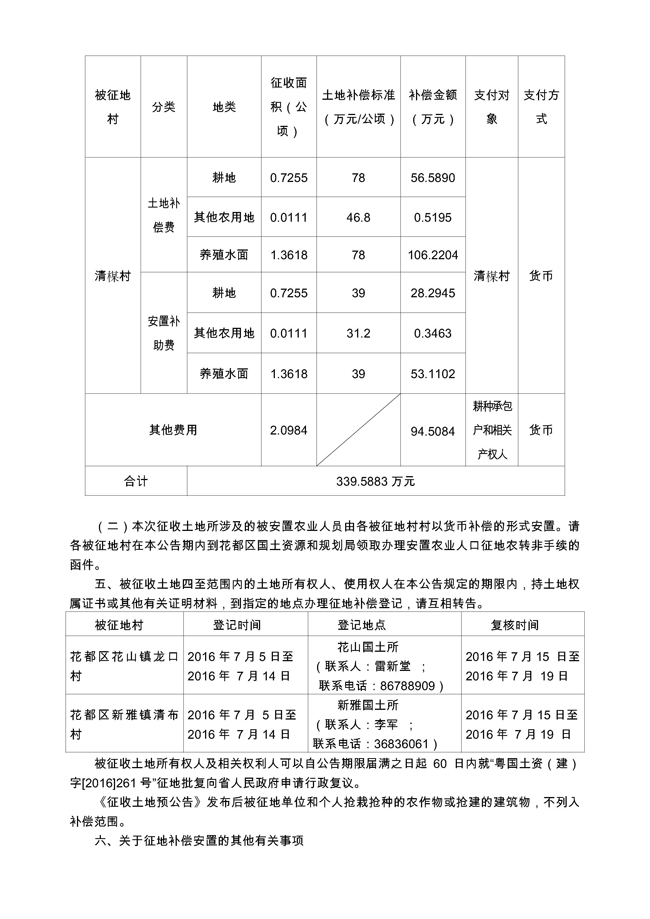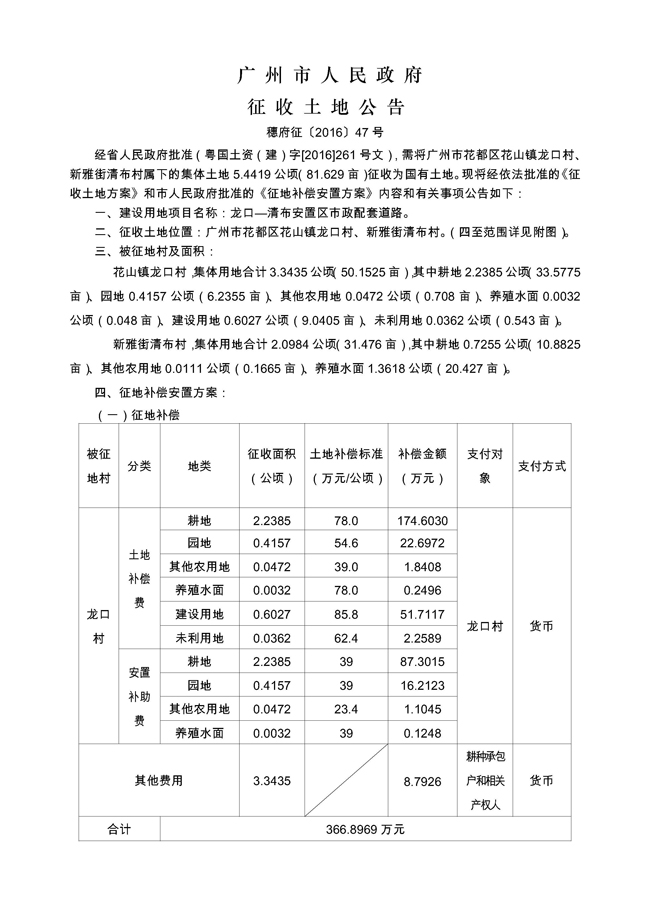 广州市人民政府征收土地公告——穗府征〔2016〕47号